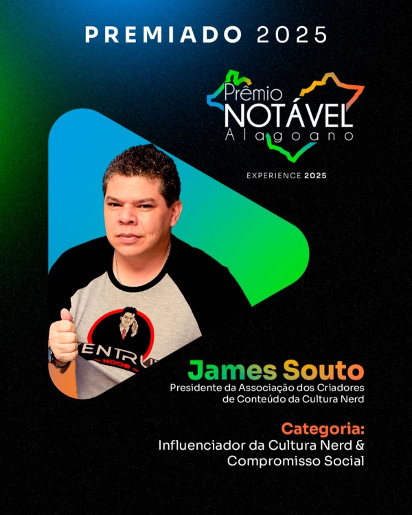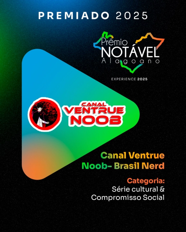 Maceió, AL – O universo da cultura pop e nerd de Alagoas alcança um novo patamar de reconhecimento. O tradicional Prêmio Notável Alagoano, em sua terceira edição, anuncia um feito inédito: o Canal Ventrue Noob e seu CEO, James Souto, serão os primeiros a serem laureados em duas categorias distintas na mesma edição. O reconhecimento destaca o impacto social e a qualidade do trabalho desenvolvido na promoção da cultura nerd no estado.